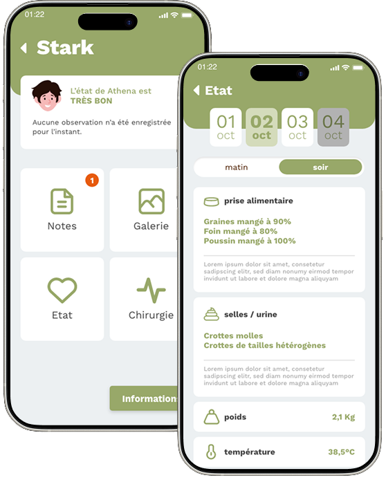 Notre application mobile vous permet de suivre l’état de santé de votre animal tout au long de son hospitalisation chez nous.